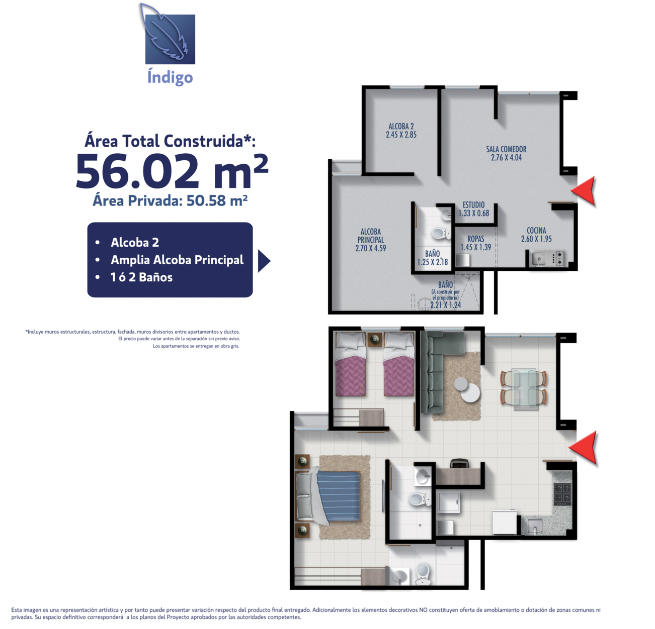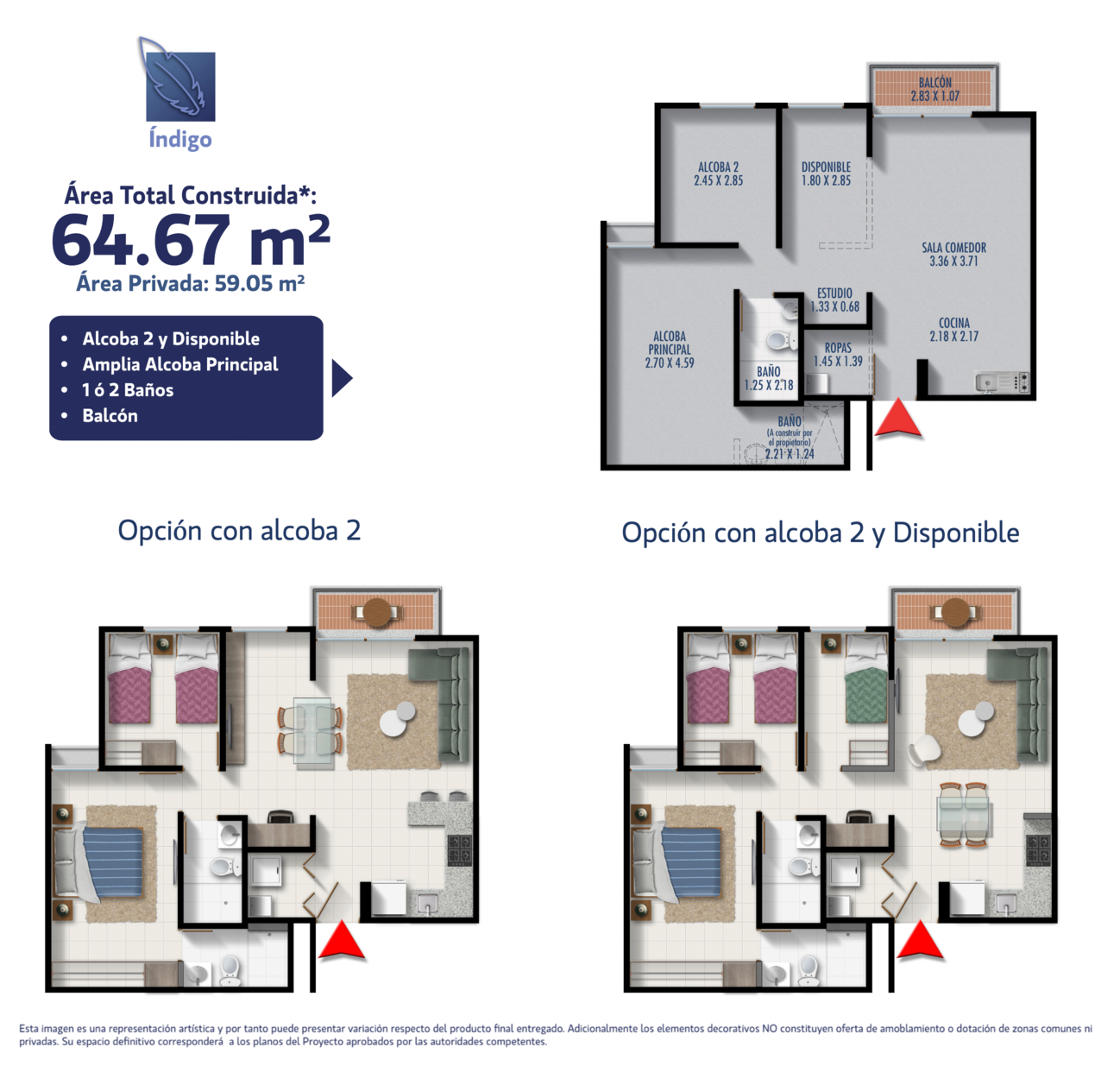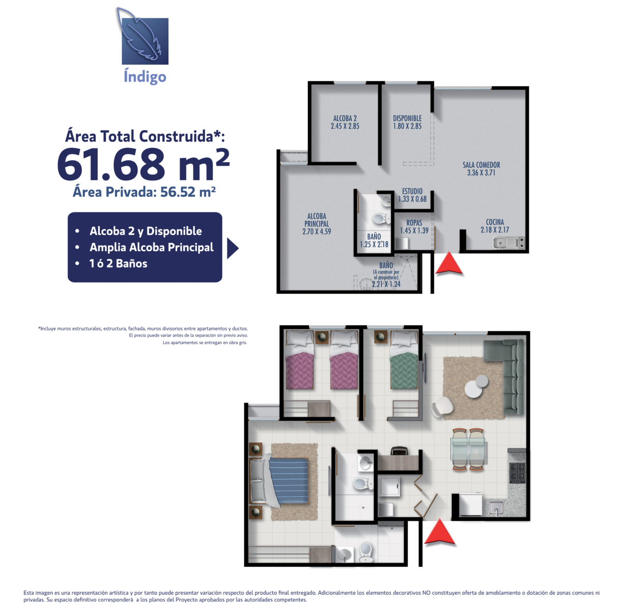 ÍNDIGO tiene los apartamentos más grandes de la zona al mejor precio y con excelentes zonas comunes para vivir el confort y el descanso.